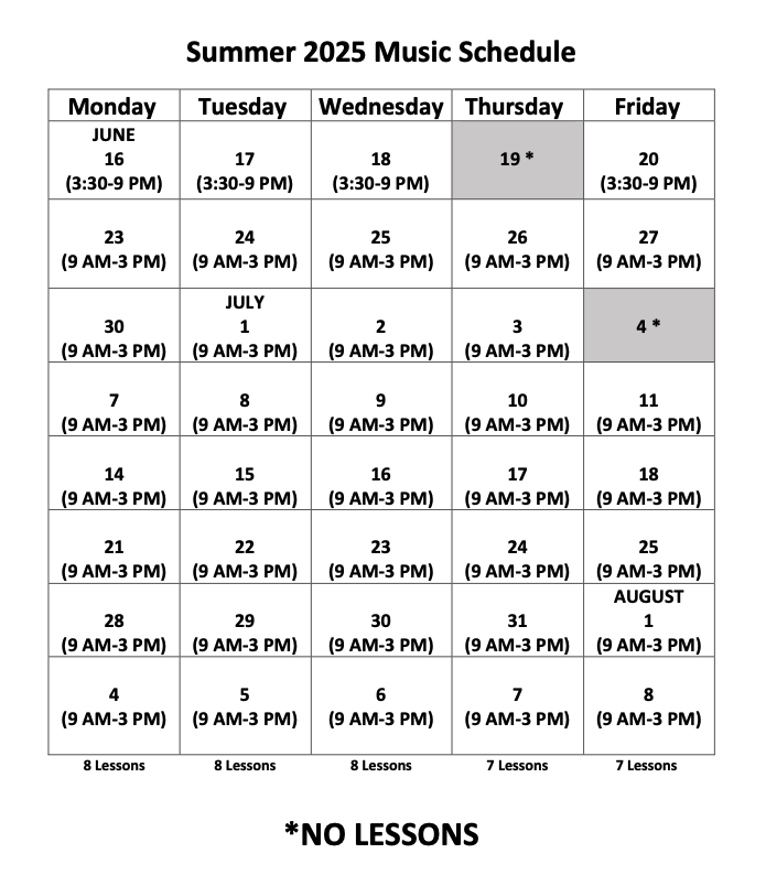 Please read the music lesson policies before signing up.