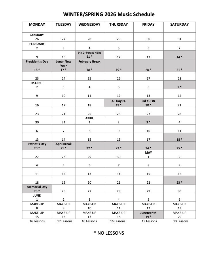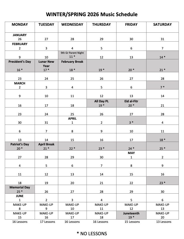 Schedules: 2025 FALL/WINTER MUSIC DATES 2026 WINTER/SPRING MUSIC DATES